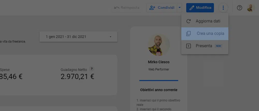Ora hai ottenuto la tua dashboard e potrai caricare le tue informazioni sul tuo Google Sheet e vedere i dati aggiornarsi su Google Data Studio.